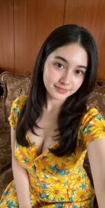 Blousenya itu mencetak jelas body serta buah dada yang berdimensi 36B serta dari bokongnya yang nungging tercipta bulatan penuh menyamai gunung kembar celana nampak dalam kecil serta tipis tercetak di blouse bagian belakangnya, paha putih mulusnya bila selagi duduk nampak dalam celana tipisnya yang bercorak gelap sangat malam ini.